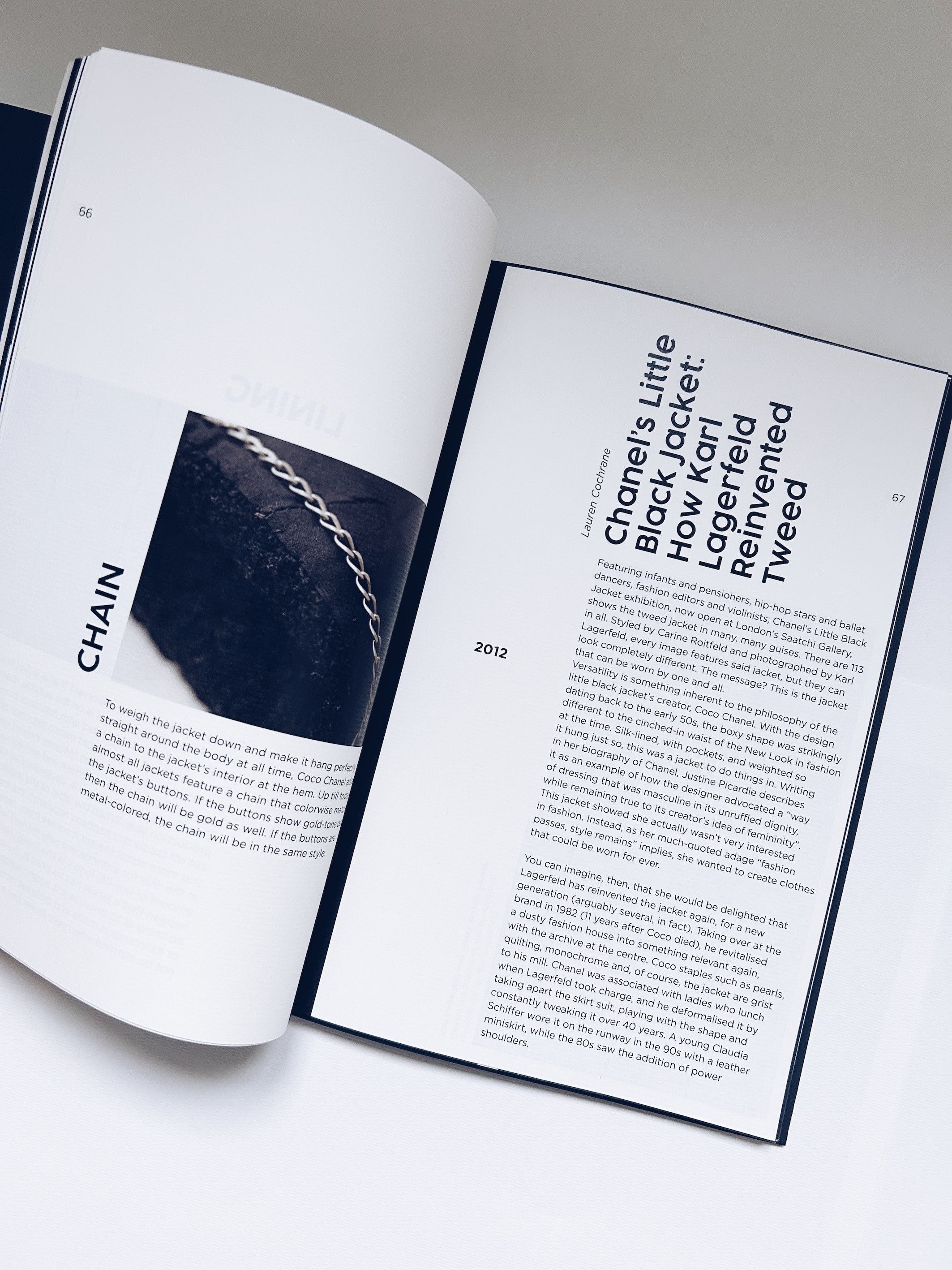 It highlights historical moments, such as Jackie Kennedy wearing the jacket during President Kennedy’s assassination, showing how a garment intersects with memory, culture and collective history. With a tweed-inspired layout, black-line motifs, and archival and contemporary photographs, the book emphasizes the jacket’s identity.