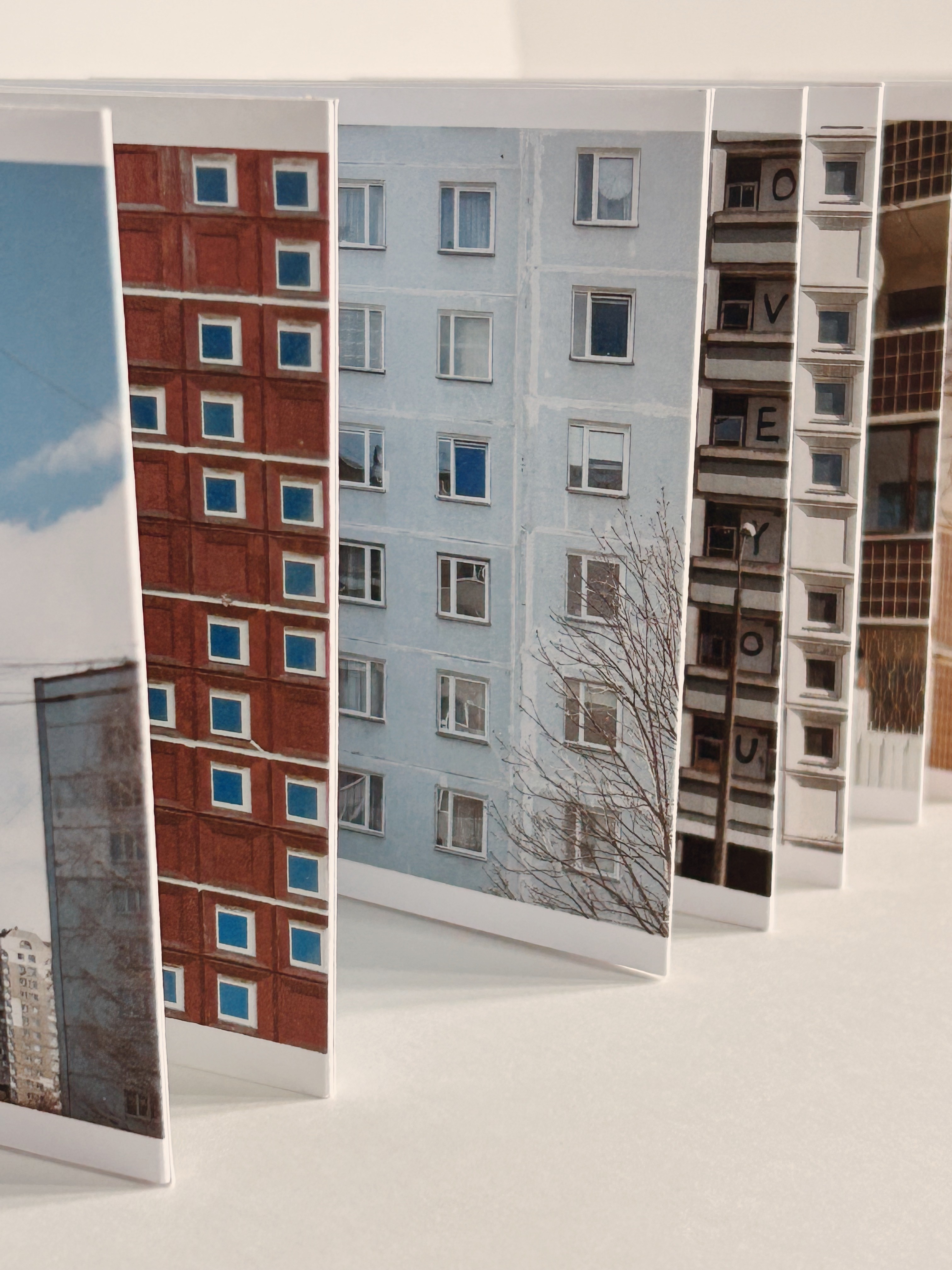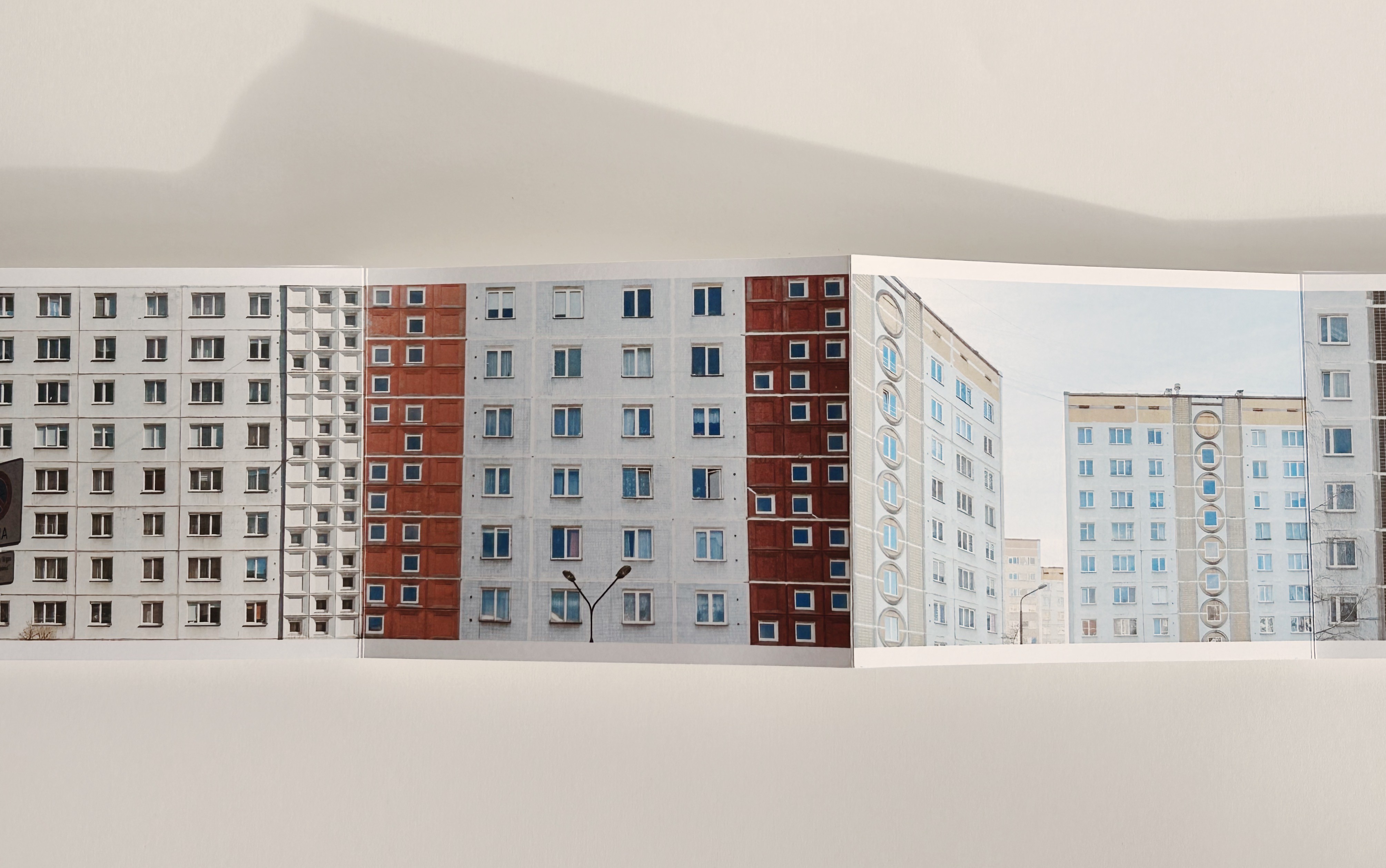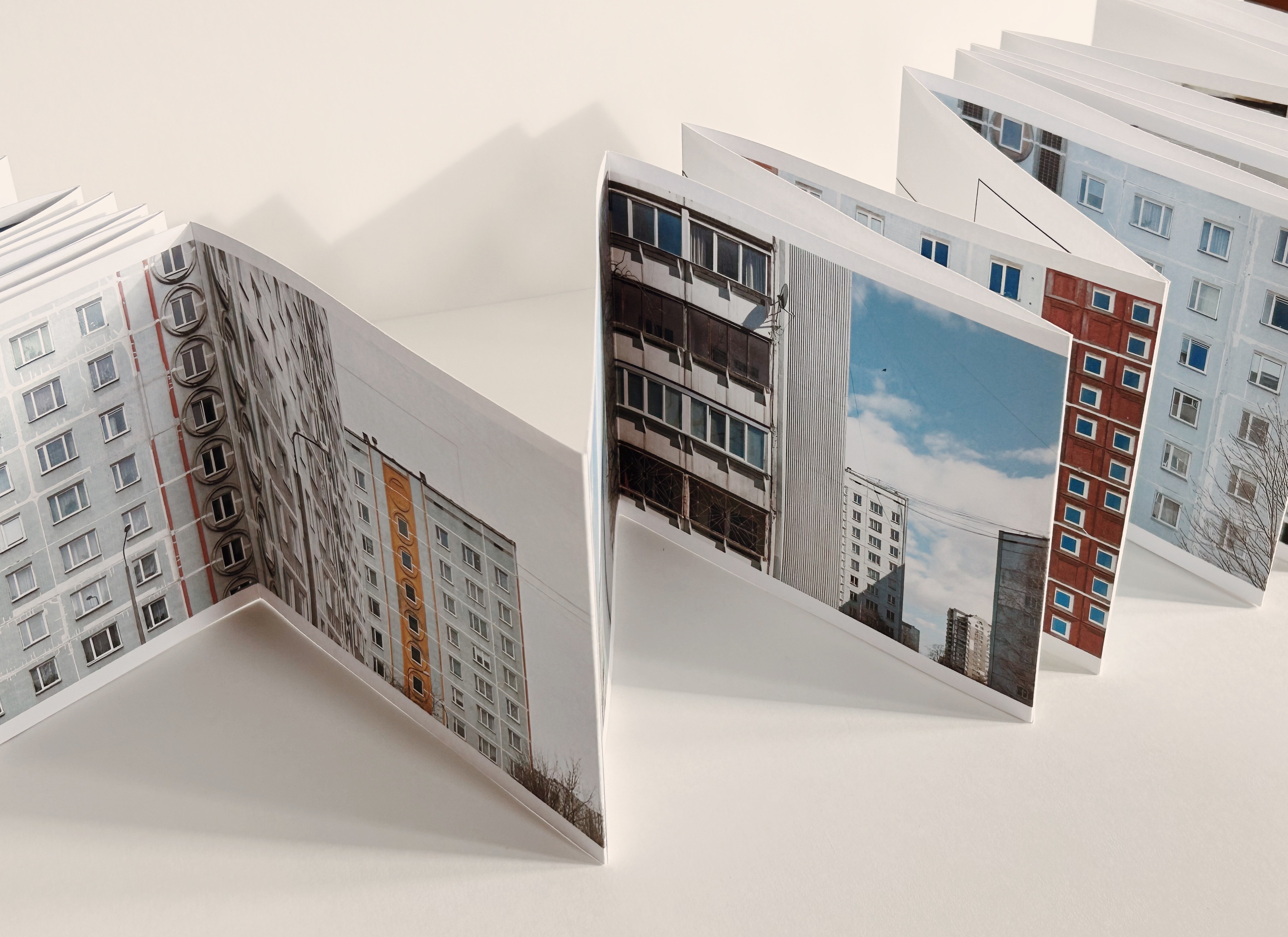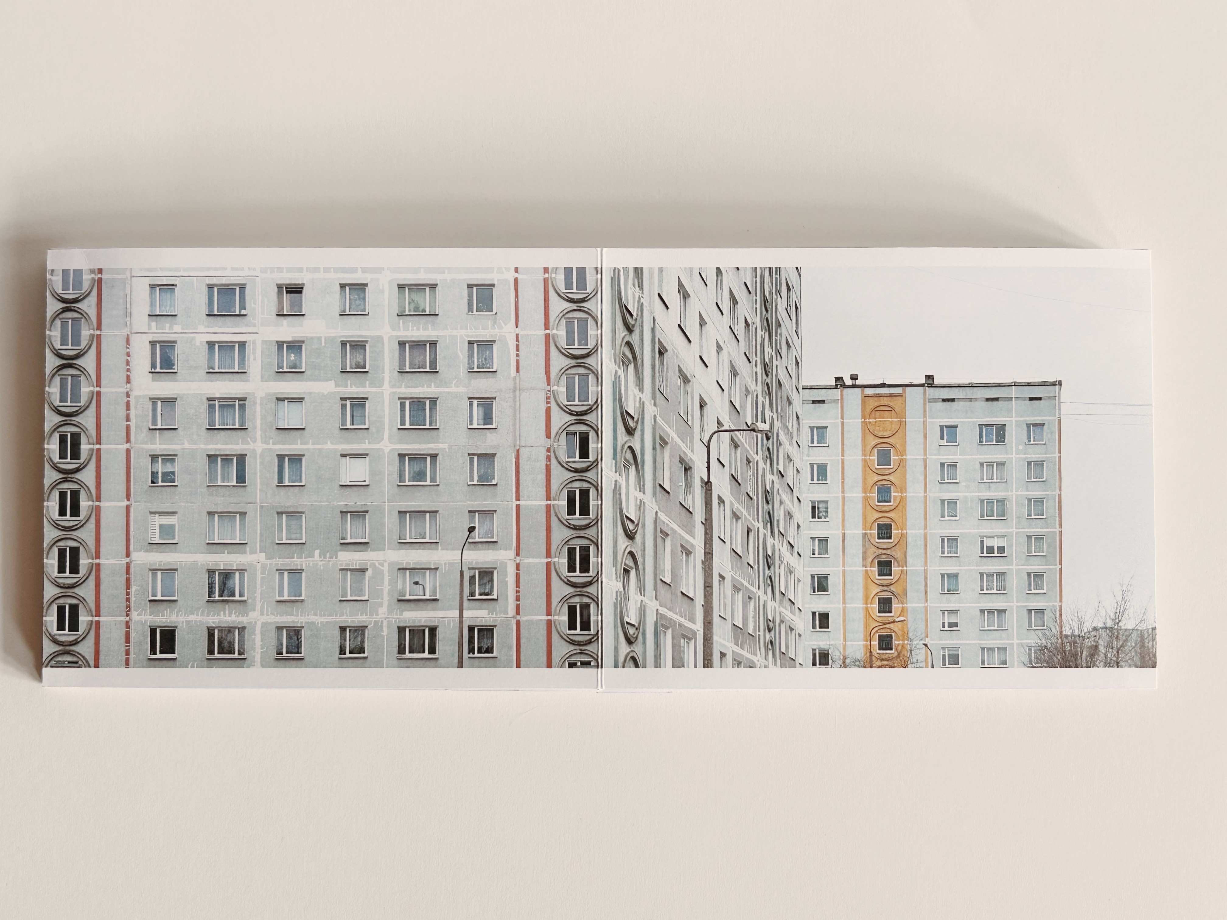 This photo series captures several suburbs of Riga built during the Soviet era Plavnieki, Purvciems, Zolitūde etc. — places defined by their typical, still-standing apartment blocks. The publication reflects the character of these buildings: long, structured, and seemingly repetitive, yet each part holding subtle differences. The series shows how these buildings look so similar that it feels like they could go on forever.